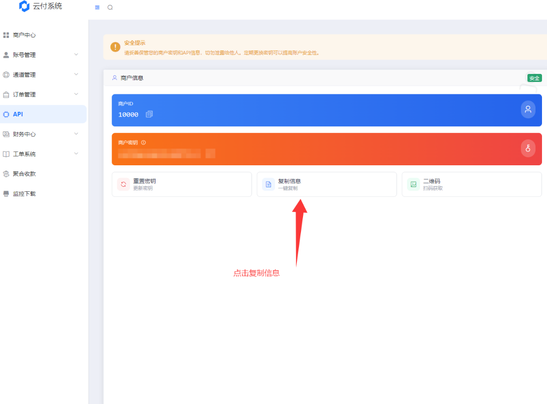 3.我们可以使用一键导入商户信息(商户中心 - API)